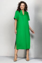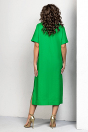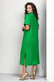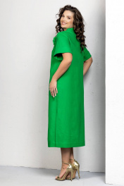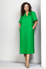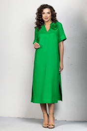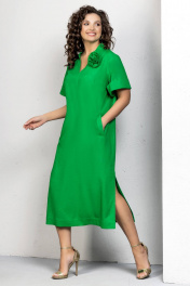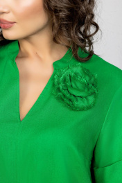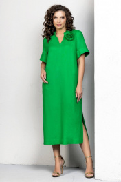 Платье из льна и текстиля с съемным цветком и карманами Gold Style 2611 зеленый