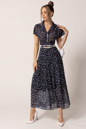 Платье с лацканами и съемными поясами из текстиля Golden Valley 44045-1 темно-синий