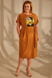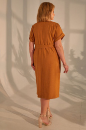 Летнее коричневое платье с поясом и коротким рукавом Golden Valley 4680 т.охра