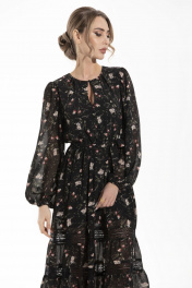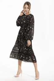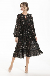 Платье демисезонное с кружевом и воланами без воротника Golden Valley 4857 черный