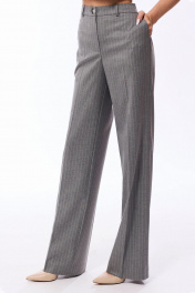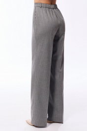Жилет с втачным воротникои и отложными лацканами пиджачного типа, центральной застежкой на пришивные кнопки. По переду с рельефами, выходящими из проймы, талиевыми вытачками. На уровне линии бедер расположены прорезные карманы с клапаном и листочкой. Спинка со средним швом, рельефами, выходящими из проймы. Брюки с отрезным поясом, застегивающимся на одну петлю и пуговицу. По спинке пояс присборен на резинку. В боковых швах расположены карманы. Вход в карман наклонный к боковому шву. Застежка гульфик.