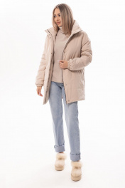 Утепленная бежевое куртка на молнии и съемным поясом Golden Valley 7137 бежевый