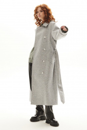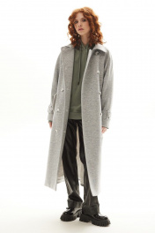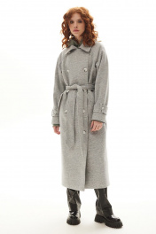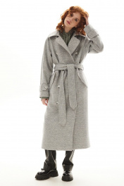 Модное серое демисезонное пальто с поясом Golden Valley 7139-1 серый