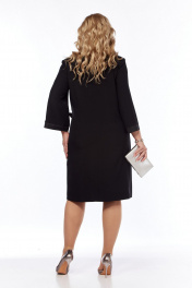 Платье женское, полуприлегающего силуэта. Перед с нагрудными вытачками, идущими от центра груди к боковым швам. С правой стороны переда расположена дизайнерская вышивка с паетками. С левой стороны расположен пояс- завязка из отделочной ткани. Спинка со средним швом, сверху вставлена потайная, короткая молния. Рукава втачные, длиной 3\4. По низу рукава расположена отделочная деталь из отделочного материала