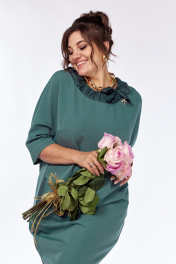 Это элегантное и модное платье станет изюминкой в Вашем гардеробе! Подойдет как для оиса, так и для торжественных мероприятий. Платье женское, с цельнокроеным рукавом. Перед с нагрудными вытачками, идущими из боковых швов к центру груди. В боковых швах по низу вставлены потайные молнии с возможностью расстегнуть как разрезы. В боковых швах расположены карманы с листочками (из плащевки). Спинка с отрезной кокеткой. От кокетки по спине идет встречная складка. По низу спинки расположена отрезная отделочная деталь (ткань плащевка) переходящая на перед. На кокетке пришита метал. Нашивка. Горловина круглая, обработанная отделочной деталью из плащевой ткани, затягивающаяся на кулису и бант, возле банта расположено украшение - брошь (может меняться в зависимости от поставок фурнитуры). Размер Обхват Обхват Обхват Длина Длина платья м 170 груди талии бедер рукава платья 56/164 126 121 123 49,5 96 58/164 130 125 127 49,5 96 60/164 134 129 131 49,5 96 62/164 138 133 135 51 100 64/164 142 137 139 51 100