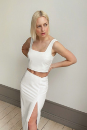 Лаконичный кроп-топ дополнит образы c жакетами и рубашками. Топ без поддержки груди, выполнен из ткани с шерстью, на подкладке. Застежка на молнию сбоку. Можно составить комплект с жакетом и брюками из коллекции HELEN BIRCH. Модель на фото размера XS (42), рост 170 см, размер топа S(44) - Деликатная ручная стирка - Гладить при температуре утюга до 110°C - Не отбеливать - Сухая чистка (химчистка) - Барабанная сушка запрещена Обхват груди: XXS – 84 см, XS – 88 см, S – 92 см, M – 96 см. Обхват низа: XXS – 68 см, XS – 72 см, S – 76 см, M – 80 см. Длина изделия от высшей точки у основания шеи по переду до низа – 43 см