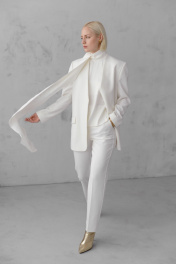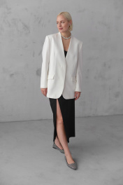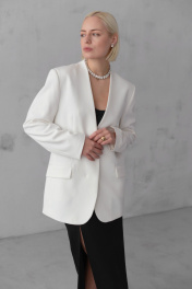 Модель жакета с шлицей, воротом «апаш» и мягкой тканью HELEN BIRCH J037а молочный