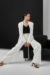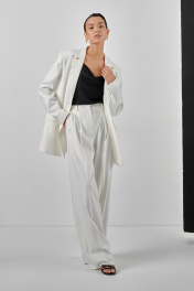 Молочные брюки с высокой посадкой и складками из костюмной ткани HELEN BIRCH В005b молочный - фото 1