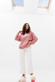 Демисезонный розовый oversize худи с начесом и принтом HIT 0208 розовый