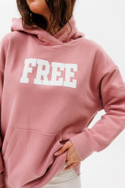 Стильное худи oversize из бархатного футера 3-х нитка с начесом. Худи с капюшоном имеет приспущенный рукав и настрочной карман-кенгуру, манжеты на довязе. По переду украшена принтом (надпись «FREE»). Худи, в котором будет тепло и уютно. Длина худи по спинке 67 (+/- 1 см.), длина рукава 74 см. Рост модели на фото 178 см, носит размер S (44).