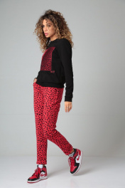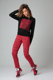 Демисезонные спорт-комплекты из трикотажа с вышивкой HIT 3092 черный+красный_леопард