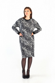 Платье с открытым плечом и карманами из трикотажа и хлопка i3i Fashion 107/2 черный_леопард