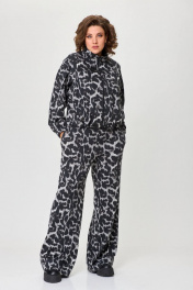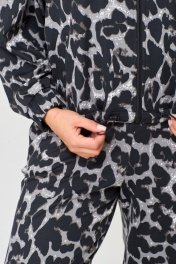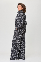 Платье свободного силуэта, изготовлено из трикотажа. Вырез горловины -V-образный, рукав спущенный 7/8-х. В боковых швах – карманы. Изделие без застежки. Длина рукава – 39см, ширина плеча – 26см, длина изделия – 104см