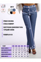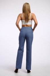 Брюки женские, широкие, палаццо, со стрелками. На передних частях обработаны кокетки и карманы с отрезгым бочком. На задних частях выполнены накладные карманы. Посадка брюк-высокая. Длина шагового шва-83 см. Бережная стирка при 30 градусах