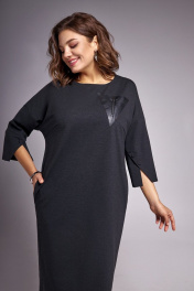 Платье из трикотажа и эко-кожи с карманами IVA 1330 графитовый