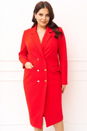 Платье-халат полуприлегающего силуэта выполнено из трикотажного полотна средней плотности, без подкладки; по переду функциональные прорезные карманы; рукава втачные; воротник отложной, застежка двубортная на петли и пуговицы.