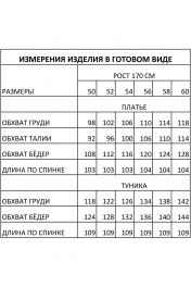 Женское платье, состоящее из базового платья без рукавов и накидки-туники из шифона. Нижнее платье прилегающего силуэта выполнено из трикотажного плательного крепа; по переду рельефы; по спинке шлица. Накидка-туника свободного силуэта с цельнокроеными рукавами; по переду декоративный разрез. Изделие полностью соответствует заявленному размеру. Пожалуйста, пользуйтесь таблицей замеров готового изделия. Уход за изделиями из шифона и плательного крепа: - рекомендуется машинная стирка при температуре не выше 30 градусов; - выбирайте деликатный режим стирки.