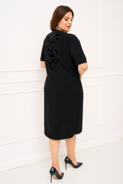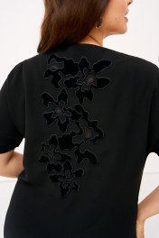Женское платье полуприлегающего силуэта выполнено из плательной ткани с цельнокроенными рукавами и декоративной дизайнерской вышивкой по спинке; в боковых швах функциональные карманы; линия низа асимметричной формы. Платье полностью соотвествует заявленному размеру. Пожалуйста, пользуйтесь таблицей обмеров готового изделия. Уход за изделием: - стирать при температуре не выше 30 градусов при бережном режиме или ручной стирке.