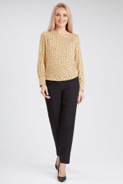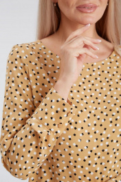 Бежевая блузка с разрезами и складками из легкой ткани IVARI 417/1 принт"ромбики"