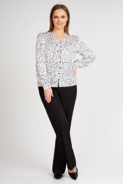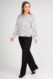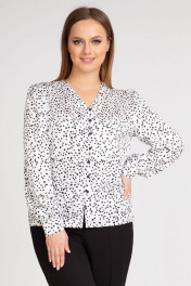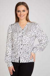 Белая блуза из креп-сатин с набивным рисунком и рукавами-фонариками IVARI 422 горох_ч/б