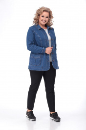 Жакет приталенного силуэта без подкладки с застежкой петли/пуговицы(болты). По полочкам изделия расположены два накладных кармана. На полочках и спинке имеются кокетки, воротник с отрезной стойкой, рукава с манжетой на застежке.петли/пуговыцы (болты) р-р 46-50 длина по спинке-70 см.. длина рукава 60 -61см бедра 100-108см. (соотв.р-ру) р-р 52-58 Длина по спинке 70 см ОГ 104-116см. (соотв.р-ру) ОБ 112-124 см. (соотв.р-ру) длина рукава 71 см В производстве изделий использована джинсовая ткань плотностью 11,5 унций и фурнитура ведущих производителей Турции.