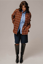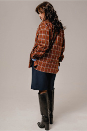 Рубашка молодежная прямого обьемного силуэта ,со спущенной линией плеча ,с центральной застежкой по переду с отложным воротником на отрезной стойке и рукавом до запястья.Перед с накладным карманом по линии груди.По спинке кокетка по плечам изделия. Перед и спинка по линии низа закруглена. Длина 78 см. ширина по линии груди и талии 56,58,60см. (42,44,46рр) ,ширина по линии бедер 58,60,62см Длина рукава 60,5 см .