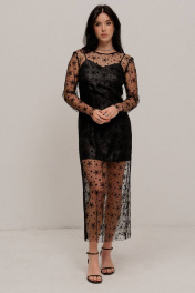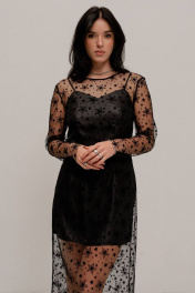 Молодежное платье из сетки и атласа с рисунком и без застежки JRSy 2392 черный