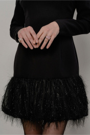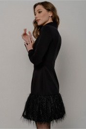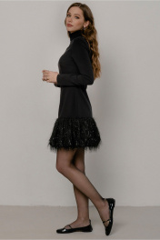 Демисезонное платье мини с оборкой и воротником-стойкой JRSy 2525 черный_с_отделкой_травка