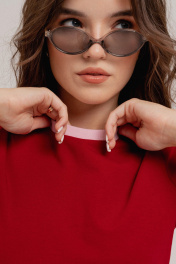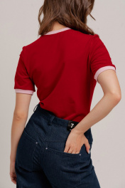 Джемпер(футболка) из трикотажа полуприлегающего силуэта с рукавом на спущенной линии проймы. Контрастный довяз по горловине и низу рукава. Длина 63,5см ширина по линии груди 44,46,48,50см. (42,44,46,48рр) ширина по бедрам 47,5;49,5;51,5;53,5.см ширина по талии 39,41,43,45см Длина рукава 23 см .