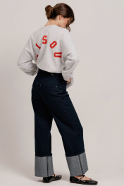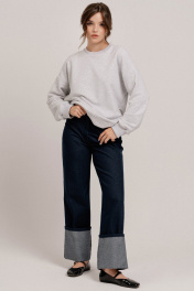 Джемпер (свитшот) молодежный из трикотажного полотна со спущенной линией плеча, с довязами по горловине и низу рукава и притачным поясом по низу. Декор на спине - принт Длина 64см. ширина по линии груди 59,63см. (42-44,46-48рр) ширина по низу 54,58см Длина рукава от горловины 72см .