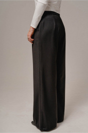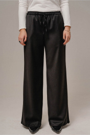 Брюки молодежные прямого силуэта из костюмной ткани однотон, на притачном поясе с эластичной тесьмой,шнурок, и наклонными карманами спереди, и иммитацией гульфика. Длина по боковому шву 105 см, ширина по талии в стянутом виде 34,36,38,40см (42,44,46,48рр) ширина по бедрам 53,55,57,59см соответственно