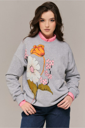 срок пошива модели 5 дней Джемпер (свитшот) молодежный из трикотажного полотна со спущенной линией плеча, с довязами по горловине и низу рукава и притачным поясом по низу. Декор - принт цветы Длина 64см. ширина по линии груди 57, 59,61,63см. (42,44,46,48рр) ,ширина по низу 52,54,56,58см Длина рукава от горловины 72см .