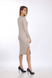 Платье женское, повседневное, прилегающего силуэта. Перед с нагрудными выточками. Спинка с застежкой на тесьму молнию в верхней части спинки. Рукав втачной одношовный. В боковых швах разрезы с декором из пуговиц. Горловина обтачная. Платье без плечевых накладок Ремень съемный