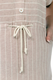 Платье женское из плательной льняной ткани, прямого силуэта. Разрезное по талии, с кулисой. Вырез фигурной формы, застежка до талии на петли и пуговицы. На левой полочке накладной карман с вышивкой. В боковых швах разрезы. Платье исполнено с разным направлением полоски. Рукава втачные, с отложными манжетами. Имеется декоративный шнур. Обращаем Ваше внимание, что цвет на экране может отличаться от реального. Длина платья по спинке – 132 см, рукава – 26 см. р.54 – ПОГ 58 см, ПОБ 64 см, р.56 – ПОГ 60 см, ПОБ 66 см, р.58 – ПОГ 62 см, ПОБ 68 см, р.60 – ПОГ 64 см, ПОБ 70 см.