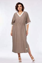 Платье свободного силуэта из вискозы с кулисой и карманами Jurimex 3072 беж