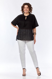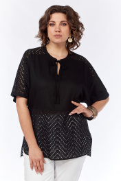 Черная свободная летняя блузка с разрезами и коротким рукавом Jurimex 3145