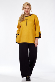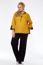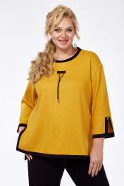 Трикотажный женский джемпер свободного кроя с декоративными элементами Jurimex 3233 горчица