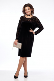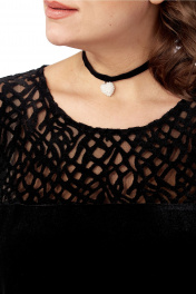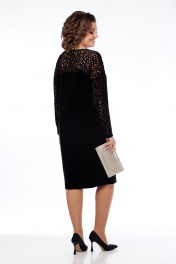 Платье женское, нарядное, свободного силуэта, выполнено из бархата и ажурной сетки. Перед и спинка с кокеткой. Горловина овальной формы. Рукава спущенные. Обращаем Ваше внимание, что цвет на экране может отличаться от реального. Длина платья по спинке — 103 см. Длина плеча + рукав — 69 см. р.54 — ПОГ 61 см ПОБ 60 см, р.56 — ПОГ 63 см ПОБ 62 см, р.58 — ПОГ 65 см ПОБ 64 см.