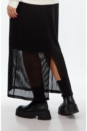Юбка зауженная к низу из ажурного трикотажного полотна на подкладке. Сзади-разрез. Юбка с поясом на резинке. Обращаем Ваше внимание, что цвет на экране может отличаться от реального. Длина юбки — 99см. р.52 — ПОТ 38 см ПОБ 56 см, р.54 — ПОТ 39 см ПОБ 58 см, р.56. — ПОТ 40 см ПОБ 60 см.