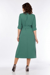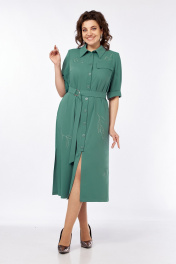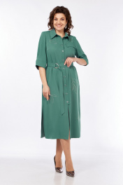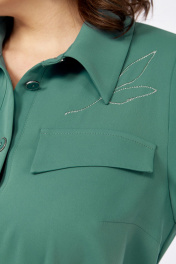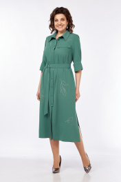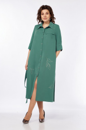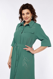 Платье женское, А-силуэта выполнено из плательной ткани. Воротник рубашечного типа, застежка центральная, фигурная планка на петли и пуговицы. Перед с нагрудными вытачками и ассиметричным клапаном в области груди. Спинка со средним швом. Рукава втачные со складками и притачной манжетой. Пояс выполнен из основной ткани с пряжкой. Платье декорировано дизайнерской вышивкой. Обращаем Ваше внимание, что цвет на экране может отличаться от реального. Состав: Полиэстер — 82%, вискоза — 15%, спандекс — 3%. Описание Длина платья по спинке — 120 см, длина рукава — 34 см. р.52 — ПОГ 56 см ПОБ 62 см, р.54 — ПОГ 58 см ПОБ 64 см, р.56 — ПОГ 60 см ПОБ 66 см.