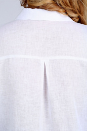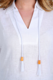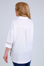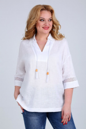 Блуза женская свободного силуэта, изготовлена из натуральной ткани. Горловина V-образной формы, с стояче-отложным воротником и фигурной вставкой. Рукав спущенный, длиной 3/4,дополнен кружевом. Спинка на кокетке со встречной складкой. Низ блузы с перепадом длины. Блуза декорирована отделочным шнуром с наконечниками. Обращаем Ваше внимание, что цвет на экране может отличаться от реального. Состав: лен — 55%, вискоза — 45%. Описание Длина блузы по спинке – 78 см, рукав + плечо – 55 см. р.52 — ПОГ 63 см, ПОБ 59 см, р.54 — ПОГ 65 см, ПОБ 61 см, р.56 — ПОГ 67 см, ПОБ 63 см, р.58 — ПОГ 69 см, ПОБ 65 см, р.60 — ПОГ 71 см, ПОБ 67 см, р.62 — ПОГ 73 см, ПОБ 69 см.