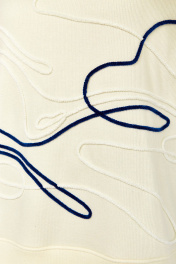 Джемпер женский свободного кроя изготовлен из трикотажного полотна. Горловина круглой формы. На полочке, спинке и рукаве расположена вышивка шнуром. Рукава спущенные, с манжетами по низу. Длина джемпера по спинке — 71 см, длина плеча + рукав — 73 см. р.56 — ПОГ 65 см ПОБ 66 см, р.58 — ПОГ 67 см ПОБ 68 см, р.60 — ПОГ 69 см ПОБ 70 см.