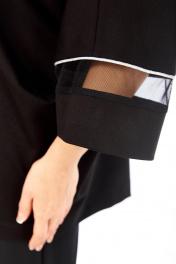 Джемпер женский, нарядный, свободного кроя. Перед разрезной, с дизайнерской вышивкой — аппликацией. Горловина круглой формы с кантом. Рукава цельнокроеные со вставками из сетки с кантом. Обращаем Ваше внимание, что цвет на экране может отличаться от реального. Описание Длина джемпера по спинке — 72 см, длина плеча + рукав — 56 см. р.56 — ПОГ 81 см ПОБ 64 см, р.58 — ПОГ 83 см ПОБ 66 см, р.60 — ПОГ 85 см ПОБ 68 см, р.62 — ПОГ 87 см ПОБ 70 см.