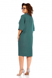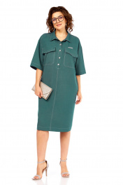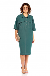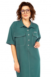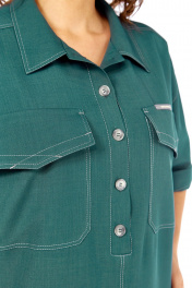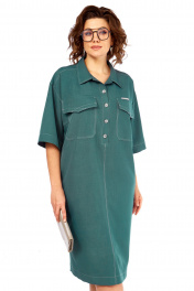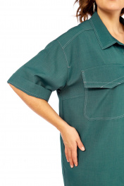 Платье женское повседневное, свободного силуэта, выполнено из ткани костюмно-плательного ассортимента. Горловина обработана отложным воротником. По переду прорезная планка до линии талии с застежкой на петли и пуговицы. Карманы накладные с фигурными клапанами. Спинка с притачной кокеткой со спущенным швом в котором обработана шлица. Рукава спущенные. В боковых швах имеются карманы. Швы изделия отстрочены контрастными отделочными нитками. Обращаем Ваше внимание, что цвет на экране может отличаться от реального. Длина платья по спинке — 107 см, длина плеча + рукав — 50 см. р.52 — ПОГ 62 см ПОБ 62 см, р.54 — ПОГ 64 см ПОБ 64 см, р.56 — ПОГ 66 см ПОБ 66 см, р.58 — ПОГ 68 см ПОБ 68 см.