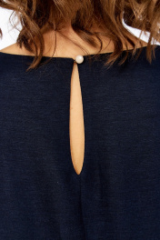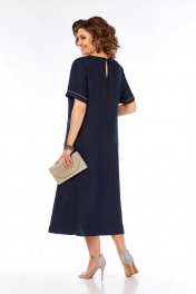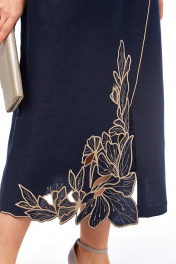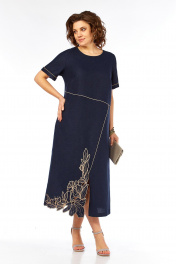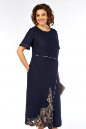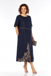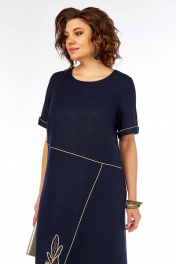 Платье женское, А- силуэта, выполнено из натуральной льняной ткани. Горловина округлой формы, обработана контрастным кантом. Перед с ассиметричными подрезами и нагрудными вытачками. Подрезы выделены контрастным кантом. Спинка со средним швом, в котором обработана застежка на навесную петлю и пуговицу. Рукава втачные. Платье дополнено дизайнерской вышивкой в технике ришелье. Длина платья по спинке — 121 см, длина рукава — 30 см. р.52 — ПОГ 56 см ПОБ 62 см, р.54 — ПОГ 58 см ПОБ 64 см, р.56 — ПОГ 60 см ПОБ 66 см, р.58 — ПОГ 62 см ПОБ 68 см, р.60 — ПОГ 64 см ПОБ 70 см, р.62 — ПОГ 66 см ПОБ 72 см.