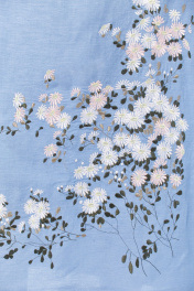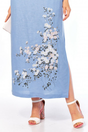 Платье женское, прямого силуэта, выполнено из натуральной ткани. Горловина округлой формы. Перед с нагрудными вытачками и косым подрезом. Рукава втачные по окату небольшая сборка, низ рукава фигурной формы. В боковых швах обработаны карманы. Платье дополнено дизайнерской вышивкой. Длина платья по спинке — 132 см, длина рукава — 26 см. р.52 — ПОГ 56 см ПОБ 59 см, р.54 — ПОГ 58 см ПОБ 61 см, р.56 — ПОГ 60 см ПОБ 63 см, р.58 — ПОГ 62 см ПОБ 65 см, р.60 — ПОГ 64 см ПОБ 67 см, р.62 — ПОГ 66 см ПОБ 69 см.