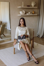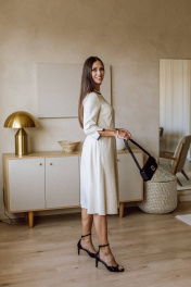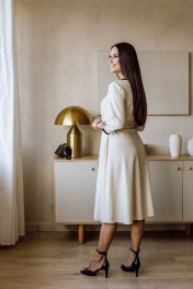 Это стильное платье в нежном бежевом цвееье с элегантным кроем станет идеальным выбором для любого случая. Моедль с длинными рукавами и изящным поясом подчеркивает талию. Создавая утонченный силуэт. Легкая и приятная на ощупь ткань обеспечивает комофрт в теченеии всего дня.