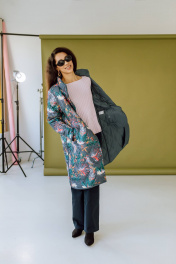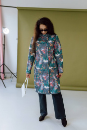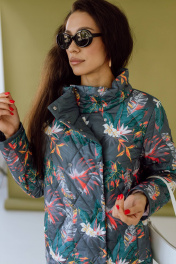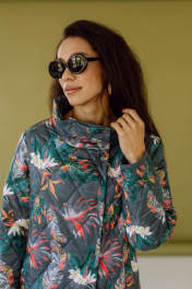 Это стеганое пальто средней длины с ярким тропическим принтом сразу привлекает к себе внимание. У пальто прямой силуэт и высокий воротник-стойка, который надежно защищает от ветра. Застежка-молния и кнопки обеспечивают дополнительное тепло и комфорт. Принт с экзотическими растениями и птицами придает образу оригинальность и свежесть. Оно идеально подойдет для создания яркого и запоминающегося образа в межсезонье.Длина изделия-104 см, длина рукава-52 см