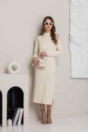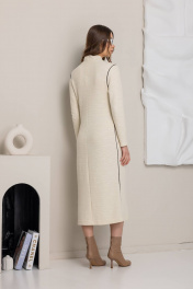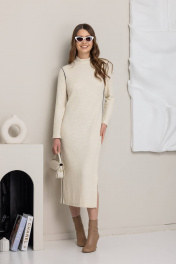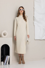 Современное платье молочного цвета с длинными рукавами и высоким воротником - идельаный вариант для создания локаничного и модного образа. Прямой силуэт и практичная длина делают его универсальным для разных случаев.