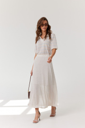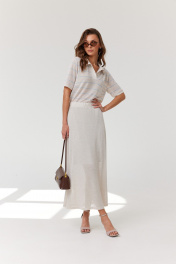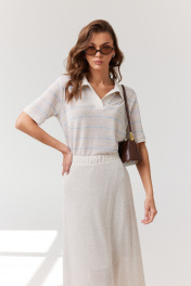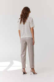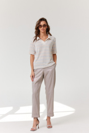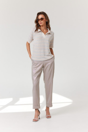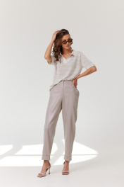 Блузка женская прямого силуэта. По переду обработаны вытачки, застежка притачными планками. Спинка цельнокроеная. По горловине воротник с цельнокроеной стойкой. Рукав короткий одношовный, по низу обработан притачной манжетой. Воротник, планка и манжеты выполнены из ткани-компаньона. Декоративные элементы и фурнитура могут отличаться от заявленных на фото. Цвет материала может отличаться по тону в зависимости от настроек вашего монитора!